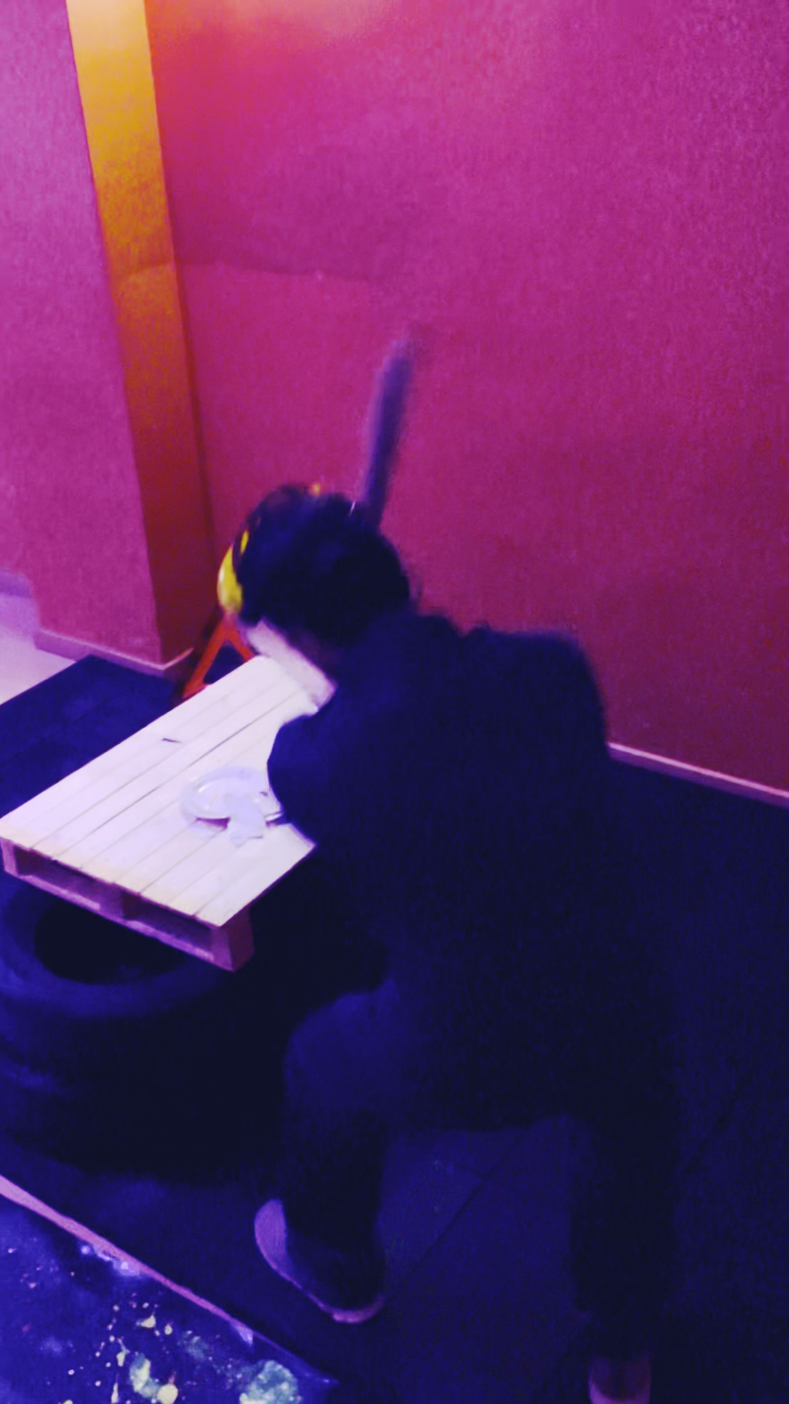 Preferimos que utilices los objetos que proporcionamos, ya que hemos seleccionado materiales que se rompen de manera segura. Si tienes algo específico en mente, comunícate con nosotros antes de tu visita para discutirlo.